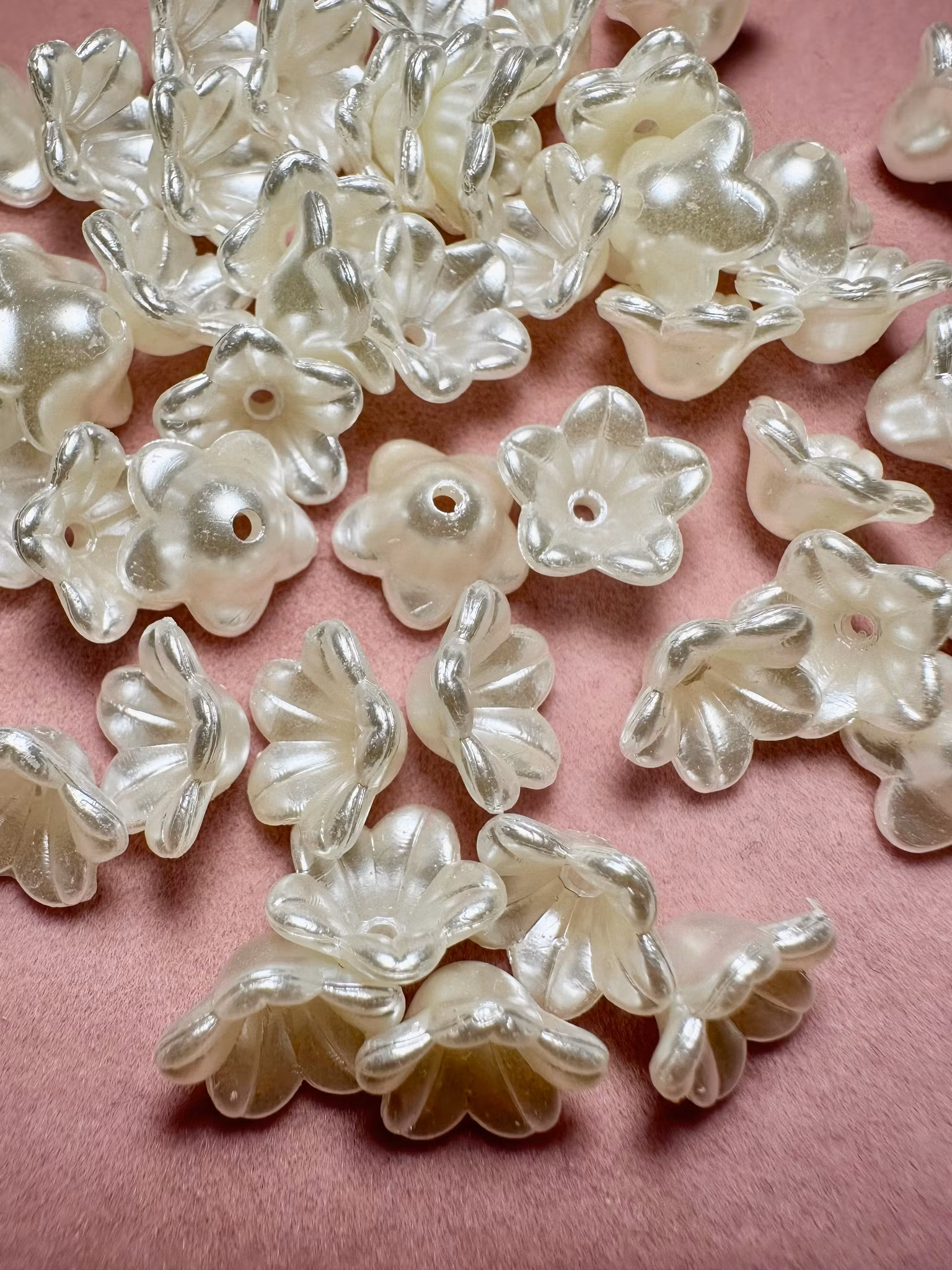 Jättefina blommor i akryl, pärlemor färg. 12,5 mm.